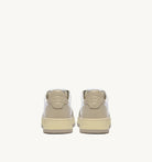Crafted from soft, authentic leather, it features a bold color-block design in white and beige, paired with a natural rubber sole and beige tread that complements the rhythm of your steps.